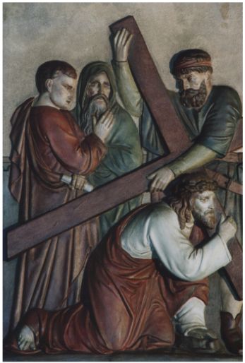 Trotz aller Mühe und Liebe zum Kreuz bricht Jesus wieder zusammen. Zu den Schmerzen und der Qual kommen noch Enttäuschung, Undankbarkeit und seelische Last. AB das drückt den Herrn nieder und lässt ihn fallen. Doch seine Feinde treiben ihn weiter. Sie wollen seinen Tod. Und wieder steht er auf und geht dem Ort der Kreuzigung entgegen.